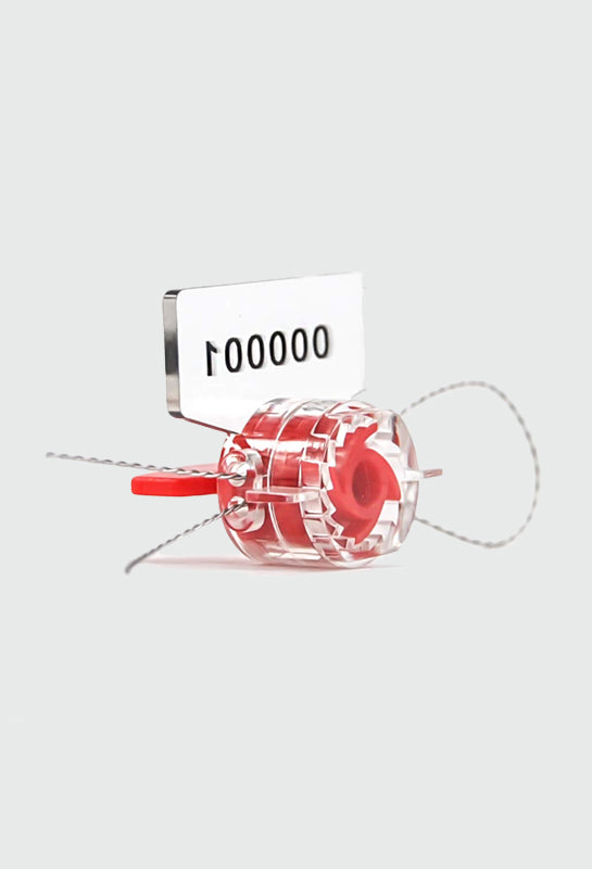 Insert strap into locking chamber and twist seal to secure. Once the wire is sealed, the only way to open it is to cut the copper wire.
